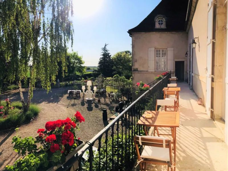 In a unique green setting in the heart of Burgundy, Domaine Pont Juillet invites you to a charming stay of relaxation and gastronomy. Outdoor swimming pool (in season), enclosed car park and wifi are at your disposal free of charge. The rooms are elegantly decorated, combining contemporary and 18th century grandeur. They are equipped with a flat-screen TV, minibar and hospitality tray. Each has an ensuite bathroom with bath and/or walk-in shower. The two junior suites can accommodate an additional child (max. 15 years). The Family Suite "Loft", located in the annex, welcomes families of up to 5 people in an intimate and cosy atmosphere with all the comforts and breakfast included! You can enjoy your continental buffet breakfast in the room or on the terrace, in the shade or in the sun. The establishment is ideally located halfway between Beaune (15 min) and Chalon-sur-Saône (10 min - nearest exit A6 n° 25) and only a few minutes by car from several restaurants, some of which are gastronomic or even Michelin starred, such as Lameloise in Chagny. Our beautiful vaulted cellars contain a selection of wines from the region and the champagnes from our family estate, tasting in accordance with health regulations by appointment only. Bicycle hire. Pets are allowed in some rooms and only on request and prior approval. Domaine Pont Juillet is the ideal starting point to discover this magnificent region.Localisation