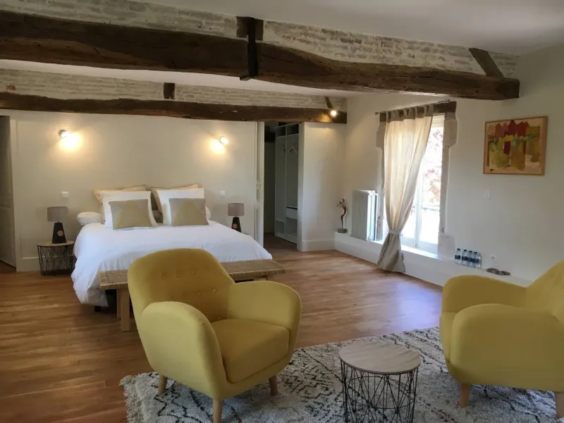 L'évidence, the former site of the Château de Pontus de Tyard, overlooks the Côte Chalonnaise and is a great base for discovering the many treasures of Burgundy Franche-Comté, particularly its wines and gastronomy. This charming house is just outside Verdun-sur-le-Doubs, close to Beaune, Nuits-Saint-Georges, Dijon and Arbois.L'évidence is a guest house and can also be privatised for a minimum of 2 nights. You can book a table d'hôte from Sunday evening to Wednesday evening. We will be happy to help you on other days.