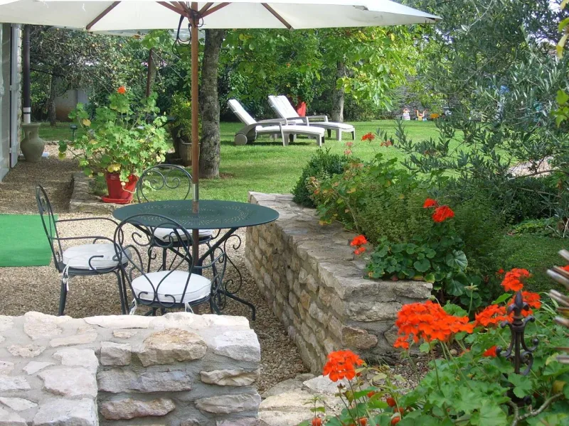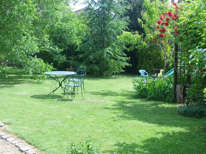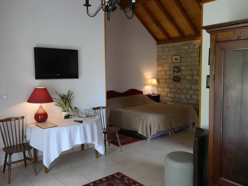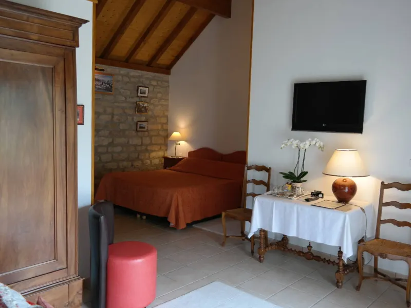 Just a 10-minute walk from the centre of Buxy and the Voie Verte, two beautiful, spacious guest rooms in a building separate from the owners' house: exposed stonework and character furniture give this new building a taste of authenticity... Each room has a private bathroom (Italian shower, hairdryer, bathrobes), WC, a sitting area with TV and sofa bed, and a terrace. Beds 180cm (2x90cm separable). Breakfast is served on the terrace (overlooking the garden with trees and flowers) or in the lounge (fireplace). Enclosed car park. Baby equipment. Air conditioning. Wifi access at the owner's house.Localisation