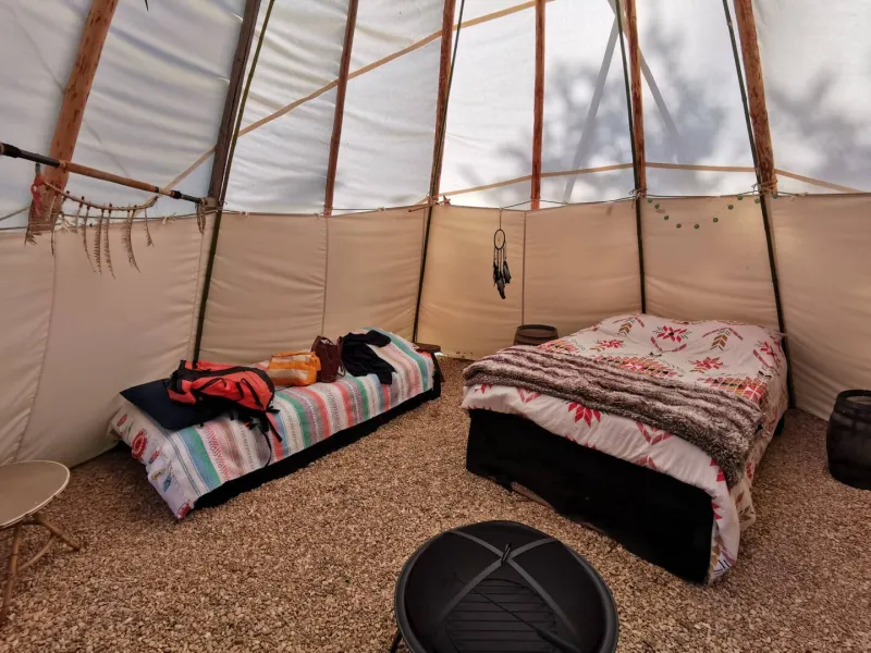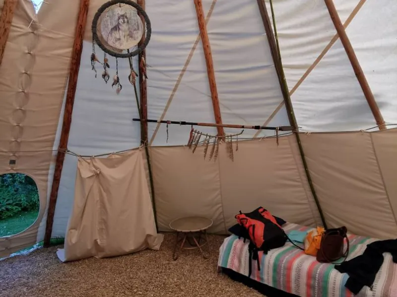 On the banks of the Dheune, enjoy the calm and greenery of a beautifully wooded park and experience the tepee. You have access to sanitary facilities and a summer kitchen. In the grounds, you'll find barbecues, trampolines, relaxation areas and a hammock.Localisation