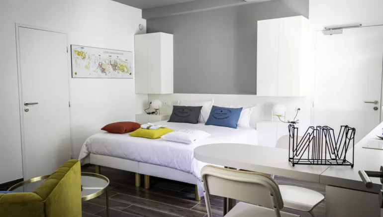 In the heart of Givry, in a completely renovated building, come and spend some quality time in this furnished studio of 26 m2, with a high level of comfort, allowing you to live in complete freedom and autonomy thanks to its fully equipped kitchen (refrigerator, dishwasher, hotplates, oven, espresso...). The XXL bedding (180x200), the bathroom with toilet and Italian shower, the reversible air conditioning, the general atmosphere and many other quality services will convince you to extend your stay.