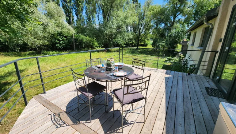 Terrace on stilts, a real asset of the place, ideal for breakfast at sunrise or an aperitif overlooking the river