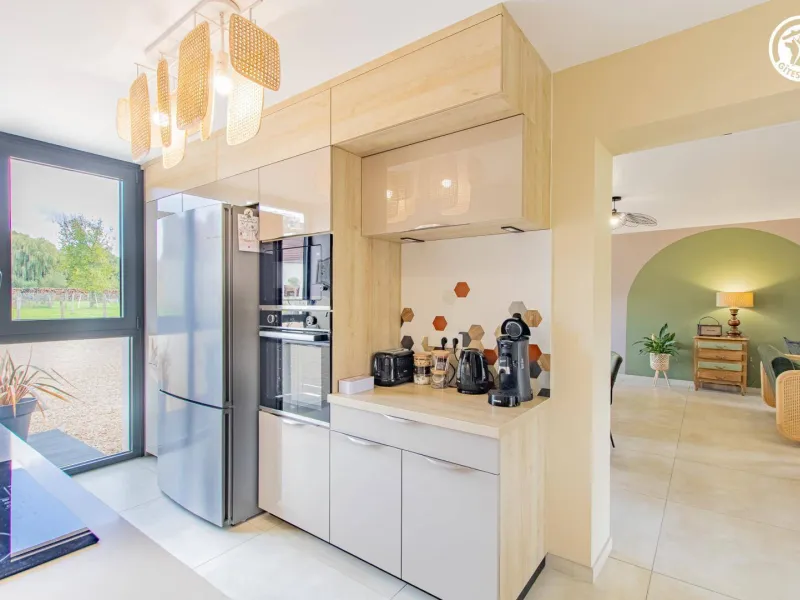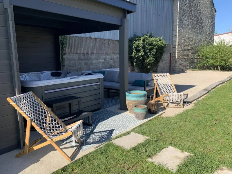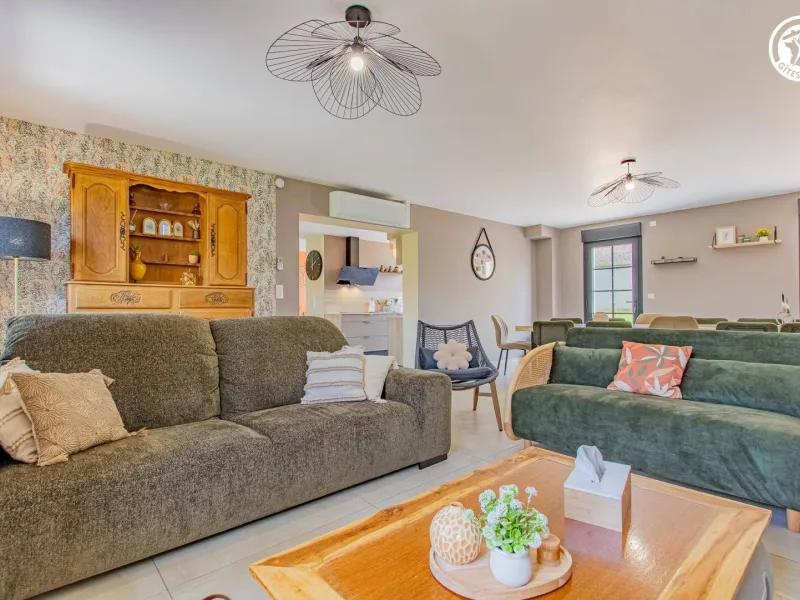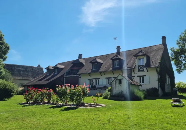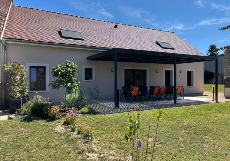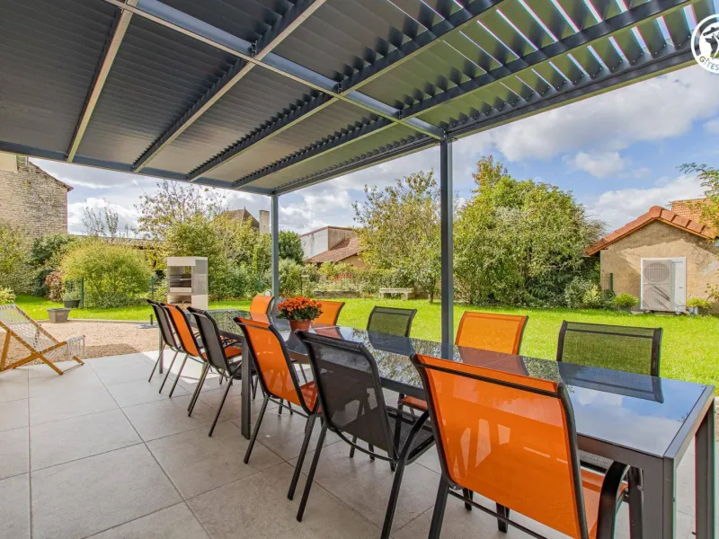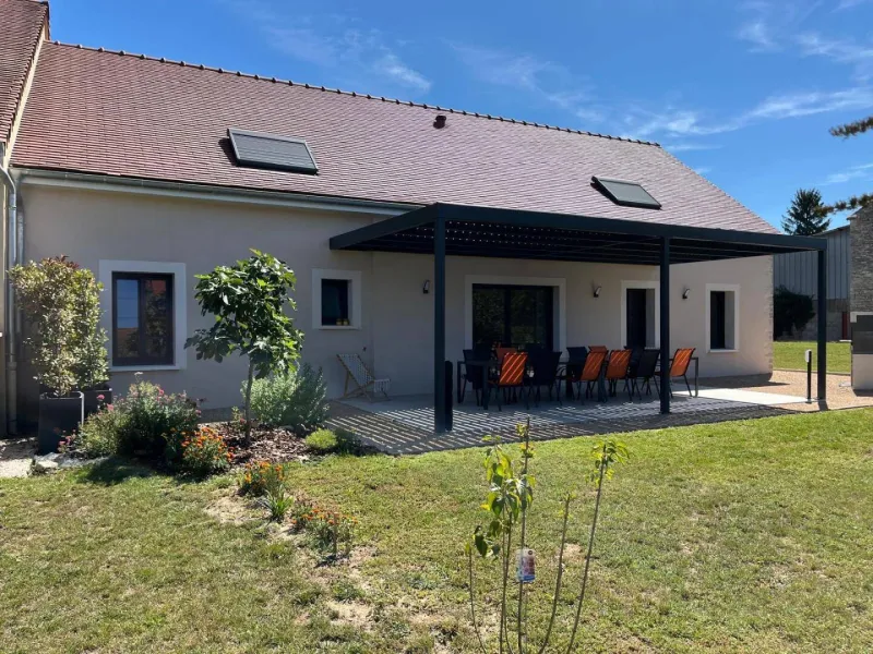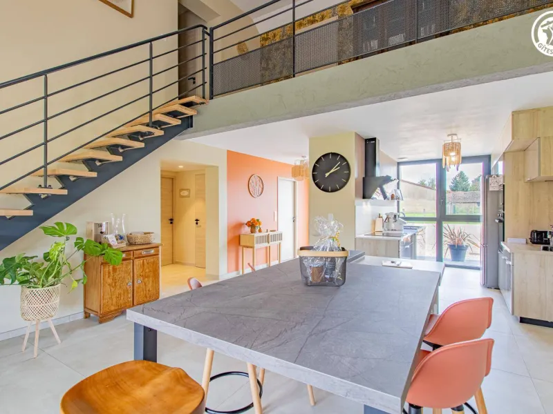 Authentic country barn dating from the early 20th century, fully restored with care, revisited as an ultra-comfortable holiday home, nestled in the quiet "backyard", on the edge of a mini pasture welcoming sheep in season, in the heart of a peaceful little typical village & shops (including a mini-market). Total tranquility in the heart of the preserved Bresse countryside, plains of fields of crops & gentle meadows dotted with bucolic rivers & fish ponds, close to several vast wild forests (to explore on foot or mountain bike), a stone's throw from the banks of the Doubs (paradise for kayakers & ultra-renowned fishing site for its famous catfish, pikeperch or carp) remarkable ecosystem partly classified as a "Natura 2000 Zone" for its exceptional ornithological reserve rich in 160 species and its very rare plant varieties (various other natural areas protected in ZNIEFF to discover in the territory). Very comfortable cottage. Large living area (78m²). Spacious and bright. High-quality amenities. Warm, contemporary country style, blending tradition and modernity in a peaceful, Zen atmosphere. Plenty of charm. Cocooning, cozy, and comfortable. Large terrace (exposed or shaded) opening onto a pleasant 1000m² garden, lawned and planted with trees (mirabell and fig trees / picking possible), offering a pétanque court backing onto a covered terrace equipped with an outdoor relaxation lounge.Composition: Semi-detached house (completely independent). Wi-Fi (fiber). Heat pump heating. Air conditioning. Ground floor: living room-kitchen-lounge (wine cellar), 2 bedrooms (double bed 160x200cm in each), bathroom (shower), separate toilet. 1st floor: 4 bedrooms (double bed 160x200cm / double bed 160x200cm / double bed 160x200cm + sofa bed 2 p. 150x190cm as an extra / 3 single beds 90x200cm), 2 bathrooms (shower/wc). Land (1000m² / courtyard + garden) + terrace + sheltered terrace + pétanque court + bicycle storage + private parking. Mini-market 2 km. Supermarket 2 km. Amenities 3 km.